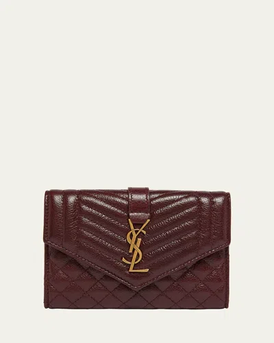 Small Ysl Envelope Flap Wallet In Quilted Leather In Wine