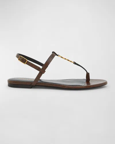 SAINT LAURENT Cassandre Leather Thong Sandals In Brown