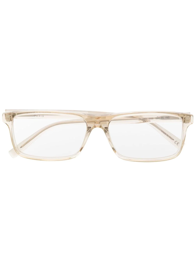 tortoiseshell-effect rectangle-frame glasses from SAINT LAURENT EYEWEAR featuring transparent frame, clear lenses, rectangle frame, raised bridge, straight arms, curved tips and beige. All glasses from FARFETCH are sold as non-prescription frames.. These glasses come with a protective case..