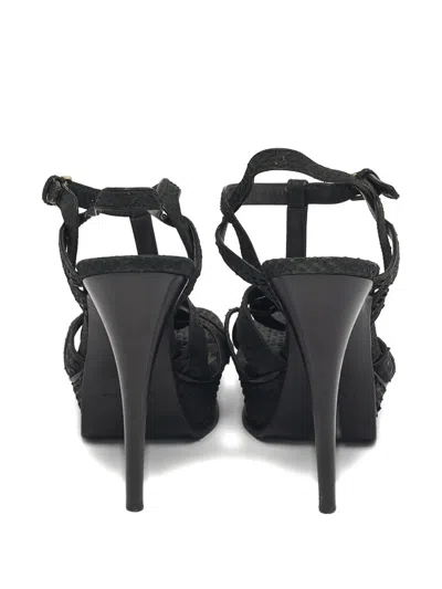 Pre-owned Tribute Python-embossed Leather Sandals In Black
