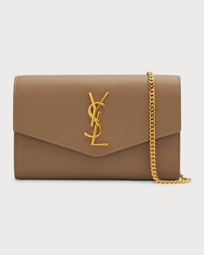 SAINT LAURENT Uptown Ysl Monogram Grain De Poudre Wallet On Chain W/ Card Case In Taupe