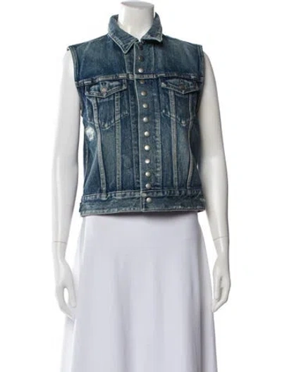 Saint Laurent Vest Blue & White Pointed Collar Flap Pockets & Snap Closure Fit: Jackets by Saint Laurent typically fit small, consider taking a size up. | Saint Laurent Vest in Blue/White, Women's M