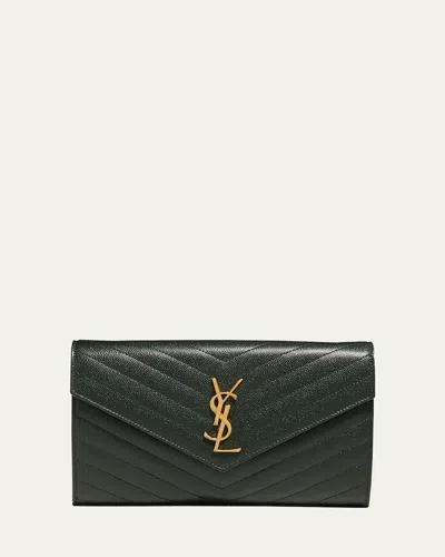 Ysl Monogram Large Wallet On Chain In Grained Leather In Black