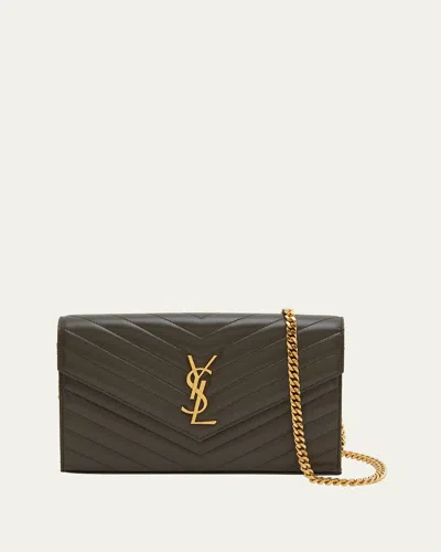 SAINT LAURENT Ysl Monogram Large Wallet On Chain In Smooth Leather In Green