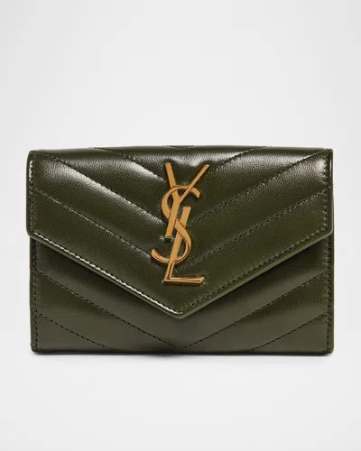 Ysl Monogram Small Flap Wallet In Smooth Leather In Green