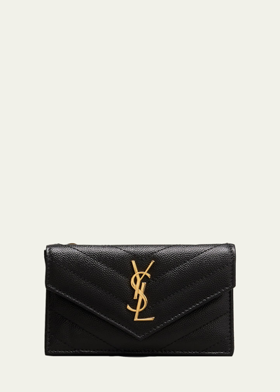 Ysl Monogram Ziptop Flap Card Case In Grained Leather