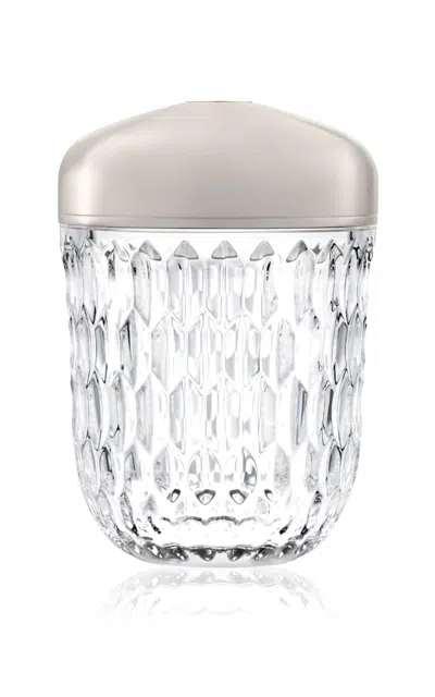 Founded in 1586; Saint-Louis is one of the most prestigious crystal glassmakers in the world. Renowned for its exceptional clarity and luminosity; each piece is mouthblown and cut by hand to achieve incredibly ornate and intricate details.The mini portable lamp; silver finish: the new light from the Folia collection by Saint-Louis. At the height of the success of the Folia series; 2024 marks the arrival of the mini portable lamp and a new dimension of contemporary Saint-Louis lighting: the small cordless light that fits in your hand. A tribute to the Moselle forest; the beveled crystal of the mini portable lamp evokes the organic forms found throughout the Folia collection; which includes tableware; decorative items and contemporary lighting. Available in three shades; the LED crystal lamp is designed to suit all styles of interior: in silver; copper and gold. Rechargeable; with two light temperatures and three levels of intensity; it can be adapted to suit your needs.