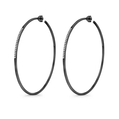 Women's Black / White Journey Earring With Man Made Cz Diamond In Premium Black Rhodium In Multi