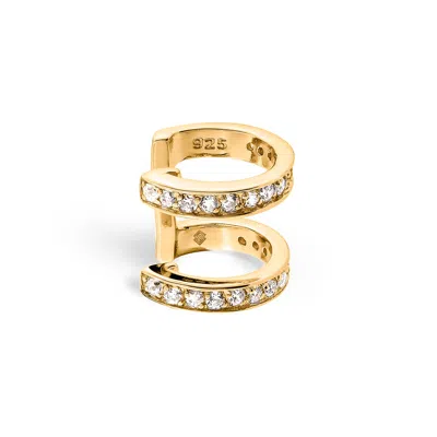 Women's White / Gold Edge Duo Ear Cuff With Man Made Cz Diamond Stimulant In Sterling Silver & 18k G In Multi