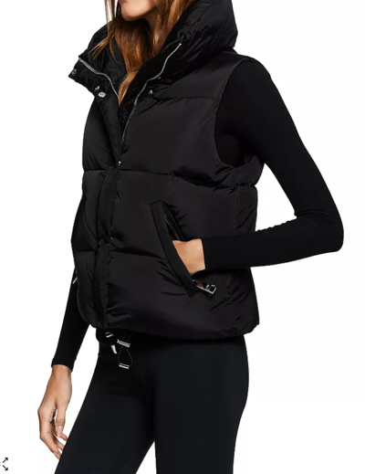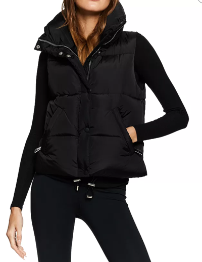 NWT ~ SAM. Arley Down Puffer Vest Front Zip w/ Snap Placket Matte Black Size M Stand collar Sleeveless Concealed front zip with snap placket Slant zip pockets at side front Hemline drawcord with toggles Wind-resistant Water-resistant Channel quilting Down-filled Lined Imported Shell: lining: nylon; fill: duck down/ feathers Dry clean The security plastic pin in yellow, red, or blue color will be attached to the item and no return will be accepted if it has been removed.