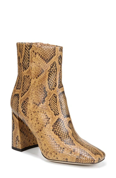 SAM EDELMAN Codie Square Toe Bootie In Cuoio Snake