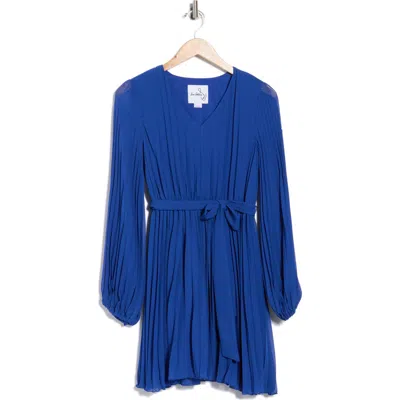 Pleat Long Sleeve Minidress In Blue