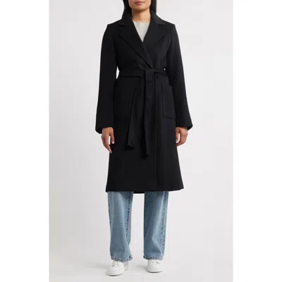SAM EDELMAN Tie Belt Wool Blend Wrap Coat In Navy Blue