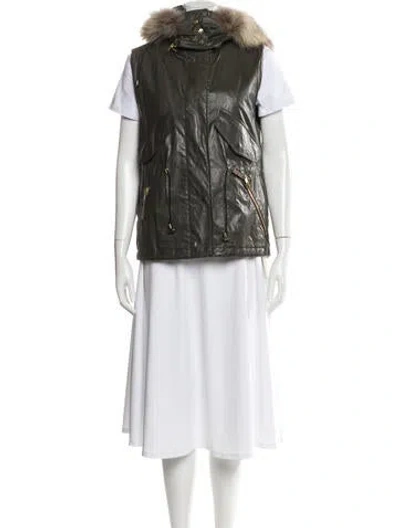 SAM. Vest Green With Hood Fur Trim & Pointed Collar Zip Pockets & Zip Closure Fit: Jackets by SAM. typically fit true to size. | SAM. Vest in Green, Women's S