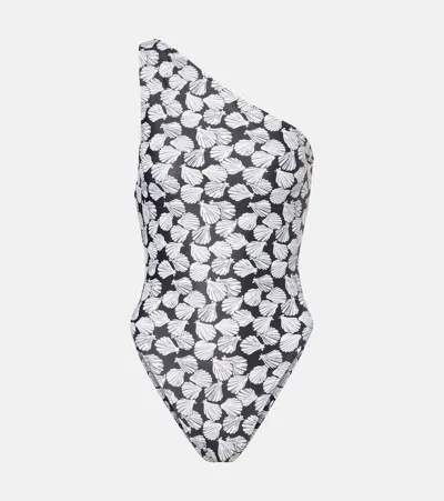 SAME Printed One-shoulder Swimsuit In Black