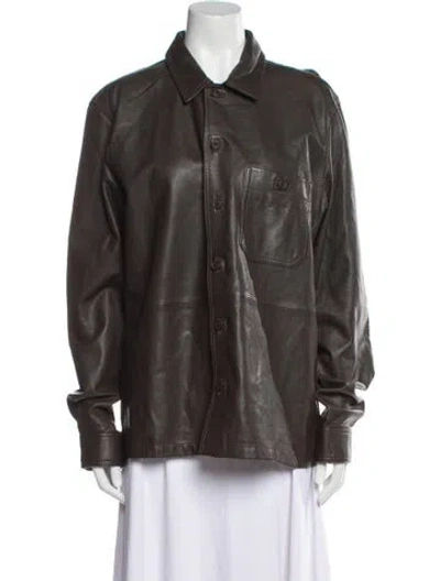 Samsøe Lamb Leather Jacket Brown Pointed Collar Patch Pockets & Button Closure Fit: Jackets by Samsøe typically fit true to size. | Samsøe Lamb Leather Jacket in Brown, Women's L