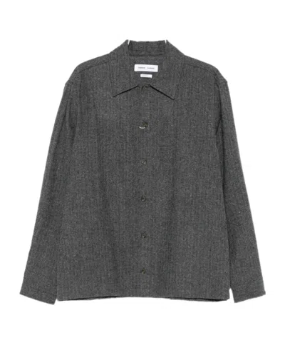 SAMSOE & SAMSOE Button-down Long-sleeved Shirt In Gray