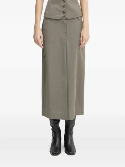 SAMSOE & SAMSOE Button-front Midi Skirt In Gray
