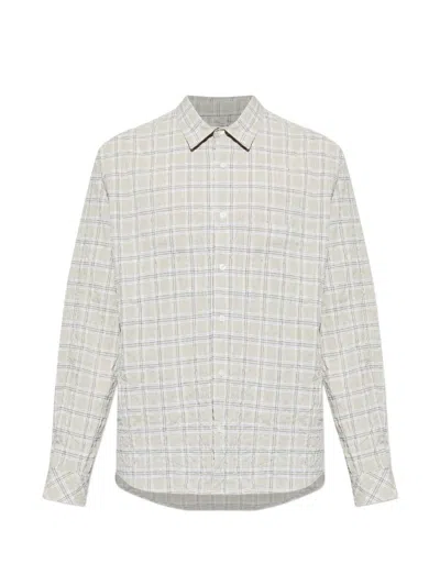 beige/white check pattern button fastening long sleeves classic collar crinkled texture