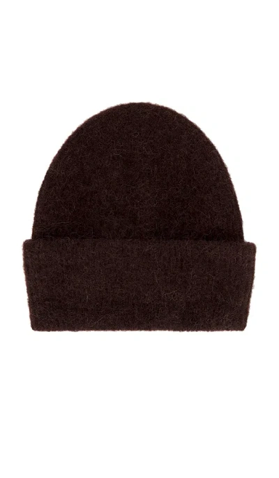 SAMSOE SAMSOE Nor Hat in Brown. SAMSOE SAMSOE Nor Hat in Brown. 32% alpaca 32% wool 30% polyester 6% elastane. Fuzzy knit fabric. SSAM-WA6. F16407300.