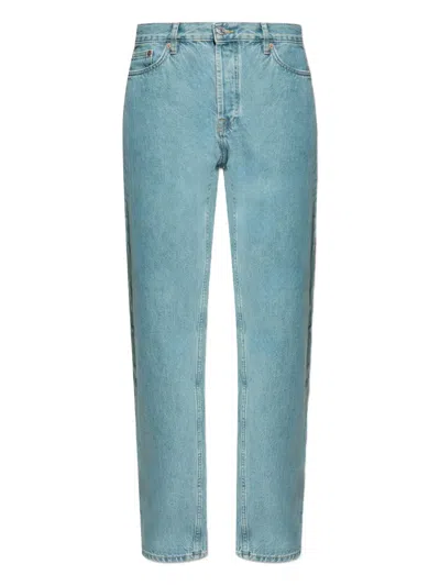 light blue classic five-pocket design belt loops button fastening logo patch at the back