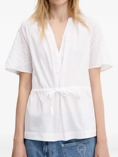 SAMSOE & SAMSOE Satoma Embroidered Drawstring Blouse In White