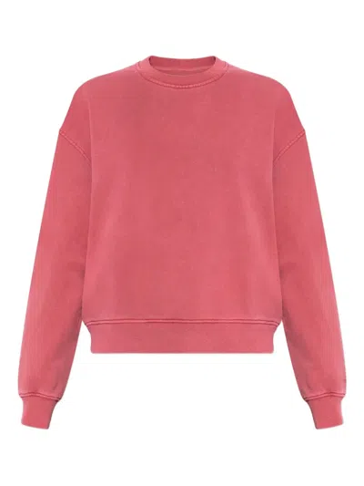 red crew neck long sleeves ribbed hem ribbed cuffs