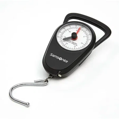 Don't be charged for overweight luggage again!Compact and portable luggage scale registers up to 80lbs.Comfort-grip handle and adjustable strap make weighing simple and comfortable.Built in tape-measure helps to ensure that bag is not over size.Manufacturer Warranty: 3 YearMeasurements: 5 Width/Inches, 7 Height/Inches, 6 Length/InchesWeight (lb.): 0.5 LbBase Material: 100% PlasticCare: Wipe CleanCountry of Origin: Imported