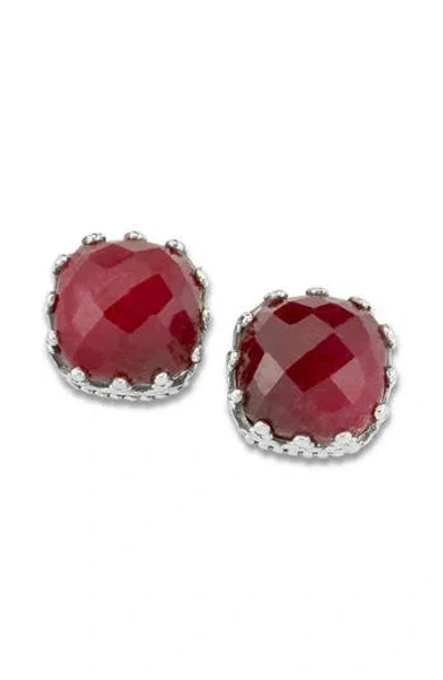 Faceted cushion-cut rubies add vibrant sparkle to these timeless stud earrings handcrafted from polished sterling silver. 12mmW x 12mmL Post back Sterling silver/ruby Imported