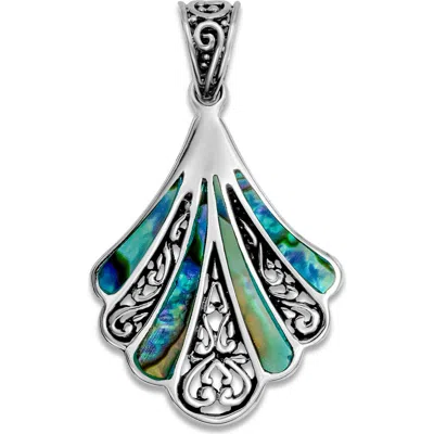 A fan pendant with engraved detailing and crafted sterling silver is a must-have staple for your collection. Chain sold separately 7/8"W x 1 1/2"L pendant Total stone weight: 1ct. Sterling silver/mother-of-pearl or abalone Imported
