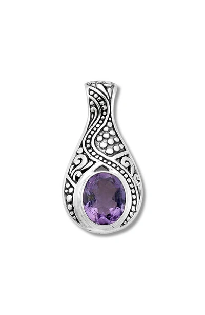 A bezel-cut blue topaz or amethyst stone centers a pendant crafted from sterling silver with intricate filigree details. Total blue topaz or amethyst weight: 2.4ct. Sterling silver/blue topaz or amethyst Imported