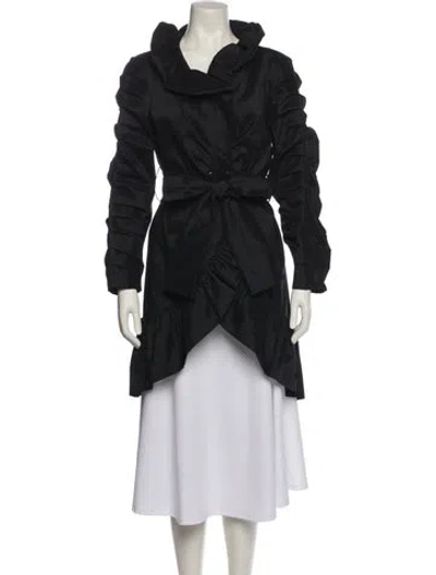 Samuel Dong Coat Black Pleated Accents & Stand Collar Knee-Length Slit Pockets | Samuel Dong Coat in Black, Women's M