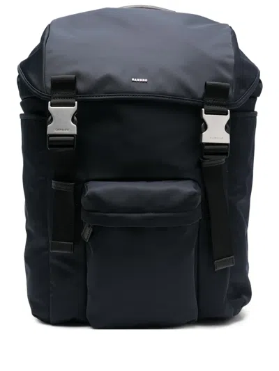 navy blue top handle adjustable shoulder straps buckle fastening front pocket internal slip pocket