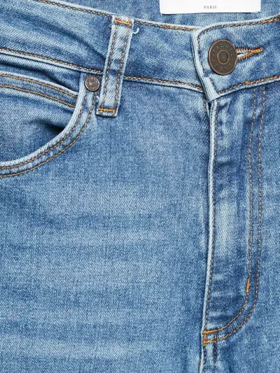 blue denim button fastening five pocket styling straight leg belt loops Condition: GOOD. This previously owned and used item is in good condition with minimal signs of use. This may include fading of material or plating and scratches.