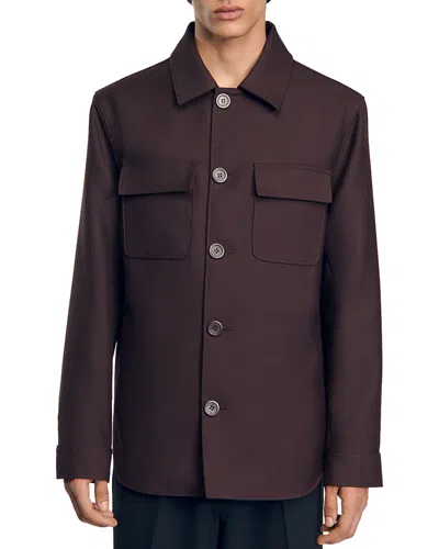Long-sleeved overshirt with buttons on the cuffs, a button fastening and flap pockets on the chest. This item's main material is at least 50% recycled. Recycling reduces the environmental impact by limiting the use of virgin materials. Sandro Men's overshirt Long sleeves Buttons on the cuffs Flap pockets Button fastening The model is 5'8 tall and wears a size S