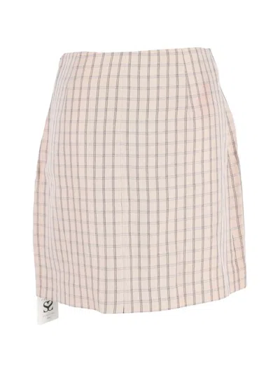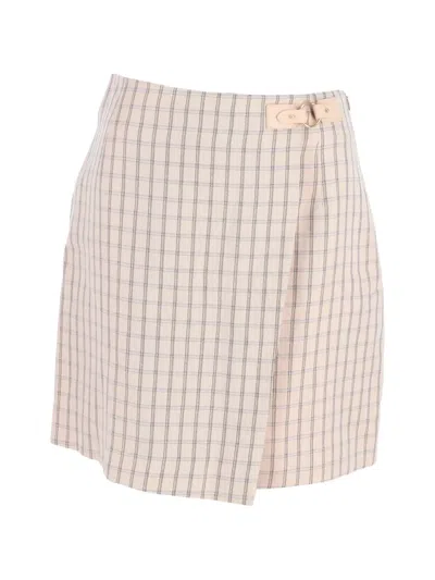 Pre-owned Checked-pattern Wrap Mini Skirt In Neutral