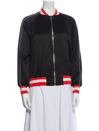 Sandro Bomber Jacket Black Colorblock Pattern Embroidered Accent & Stand Collar Slit Pockets & Zip Closure Designer size 1. Designer Fit: Jackets by Sandro typically fit true to size. | Sandro Colorblock Pattern Bomber Jacket in Black, Women's XS