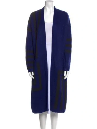 Pre-owned Colorblock Pattern Open Front Sweater In Blue