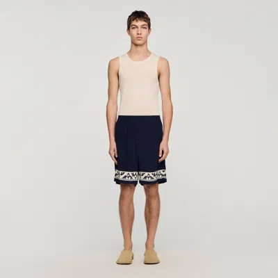 SANDRO Contrast Pattern Flowy Shorts In Blue