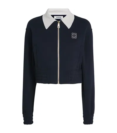 Woven into the threads of this cropped sweatshirt is Sandro's dna, coded with an air of playful contrast thanks to its dual-tone nature and varsity appearance. The piece is a celebration of reimagined familiar silhouettes, with a bold gold-tone zip and embroidered monogram details adding functionality to the spirit of youthful dressing.