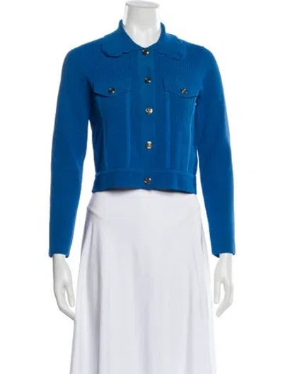 Sandro Denim Jacket Blue Scalloped Accent & Pointed Collar Flap Pockets & Button Closure Designer size 1. Designer Fit: Jackets by Sandro typically fit true to size. | Sandro Denim Jacket in Blue, Women's S