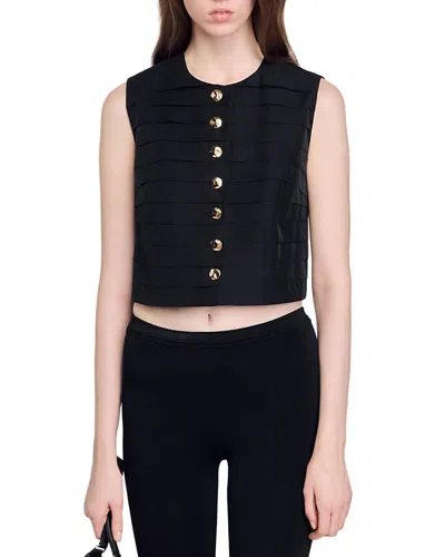 SANDRO Eilat Pleated Button-front Top In Black