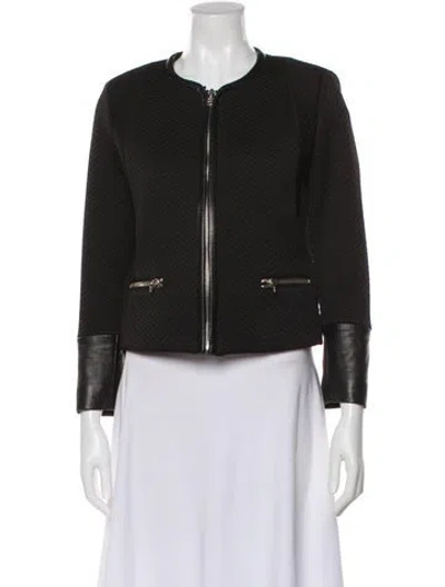 Sandro Evening Jacket Black Leather Trim Embellishment & Collarless Zip Pockets & Zip Closure Designer Fit: Jackets by Sandro typically fit true to size. | Sandro Evening Jacket in Black, Women's S