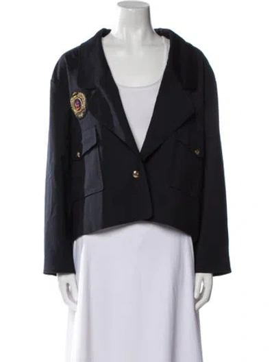 Sandro Evening Jacket Blue Embroidered Accent & Pointed Collar Flap Pockets & Button Closure Designer Fit: Jackets by Sandro typically fit true to size. | Sandro Evening Jacket in Blue, Women's M