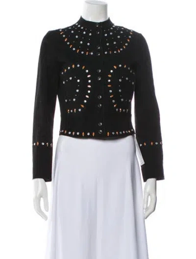 Sandro Jacket Black Studded Accents & Pointed Collar Patch Pockets & Snap Closure Size not listed, estimated from measurements. Designer Fit: Jackets by Sandro typically fit true to size. Unfortunately, due to restrictions, this item may not be eligible for shipping in all areas. | Sandro Jacket in Black, Women's M