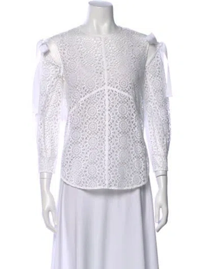 Pre-owned Lace Pattern Crew Neck Blouse In White