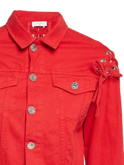 Pre-owned Lace-up Shoulder Denim Jacket In Red
