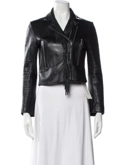 Sandro Leather Biker Jacket Black Pointed Collar Zip Pockets & Zip Closure Designer size 2. Designer Fit: Jackets by Sandro typically fit true to size. | Sandro Leather Biker Jacket in Black, Women's M