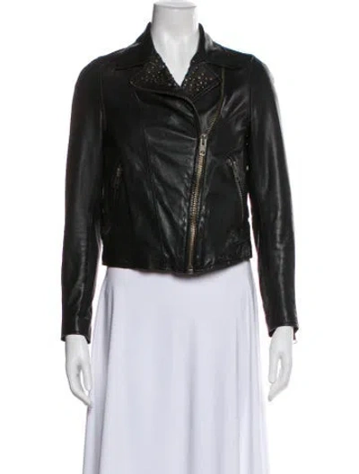 Sandro Leather Biker Jacket Blue Leather & Studded Accents Pointed Collar Zip Pockets & Zip Closure Designer size 1. Designer Fit: Jackets by Sandro typically fit true to size. | Sandro Leather Biker Jacket in Blue, Women's S