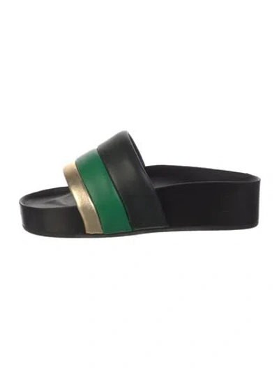 Sandro Leather Slides Black & Green Colorblock Pattern Platform Includes Box Unfortunately, due to restrictions, this item may not be eligible for shipping in all areas. | Sandro Leather Colorblock Pattern Slides in Black/Green, Women's FR 38 | 7